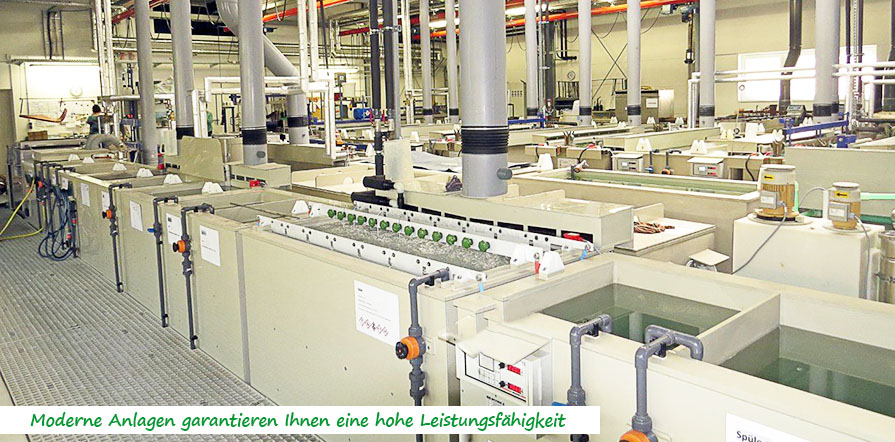 Unsere modernen Anlagen ermöglichen uns eine wirtschaftliche Produktion und garantieren Ihnen eine hohe Leistungsfähigkeit. Für unterschiedliche Anforderungen stehen Trommel- und Gestellbäder zur Verfügung. Diese Produktionseinrichtungen erlauben die Fertigung von Groß-, Mittel- und Kleinserien.
